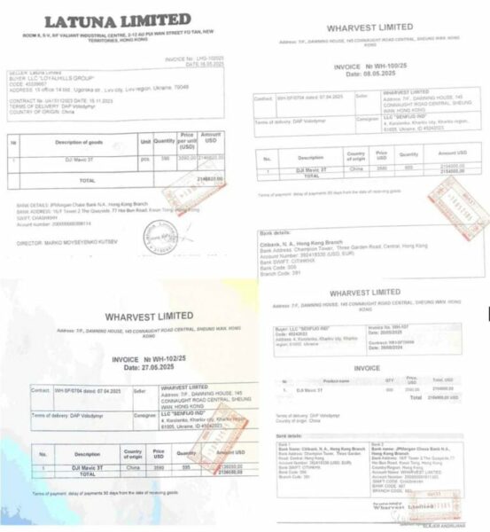 Майже у всіх інвойсах вказуються партії дронів по 600 штук